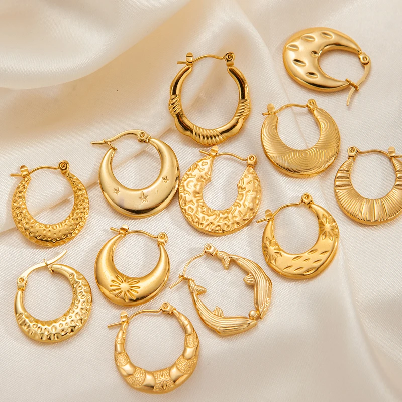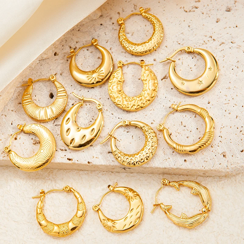 ANENJERY 316L Stainless Steel 6 Pieces Irregular Circle Wrinkle Pattern Earring for Women Unique Jewelry Gifts Wholesale