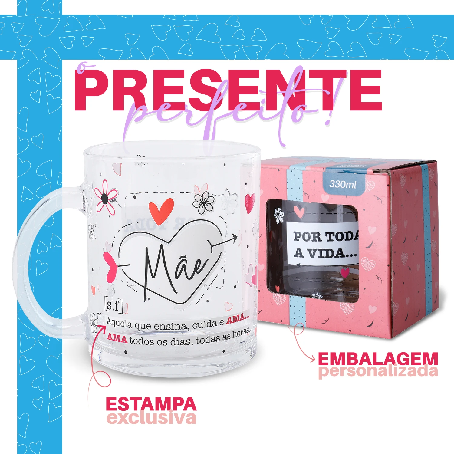 Caneca Presente Mãe Lembrancinha 330ml Café Chá Vidro- Dolce Home