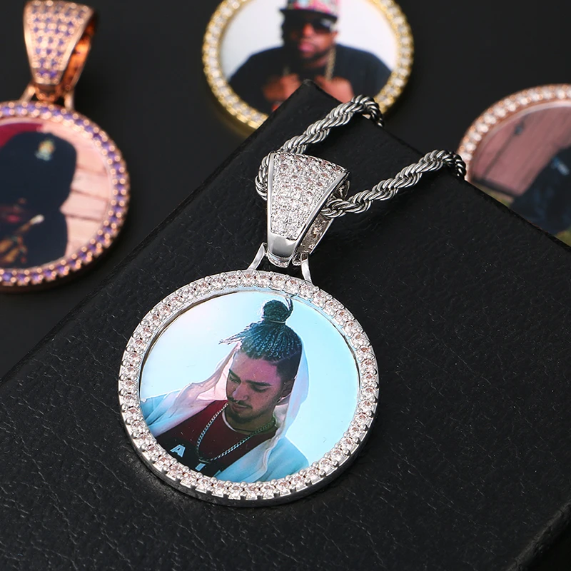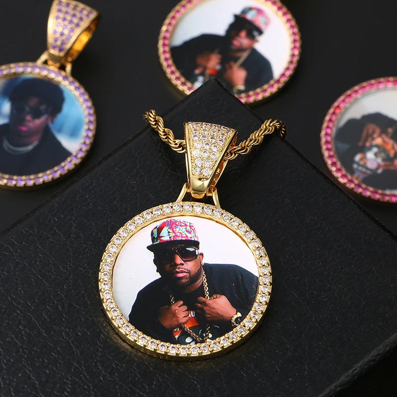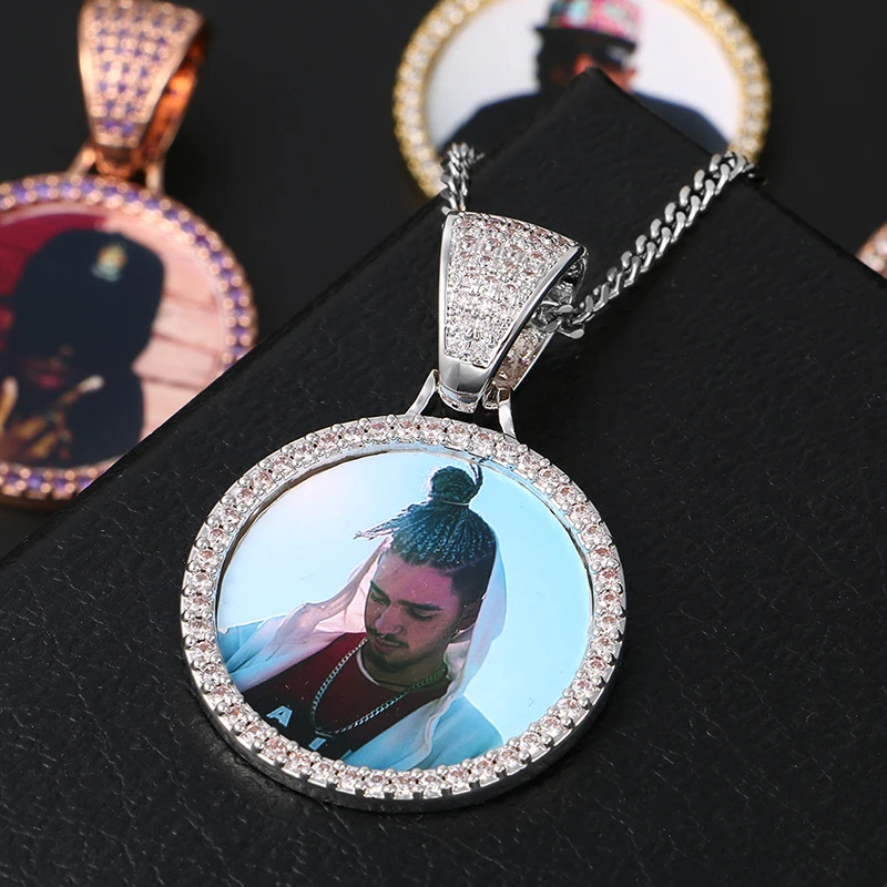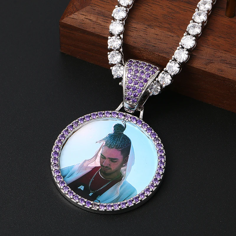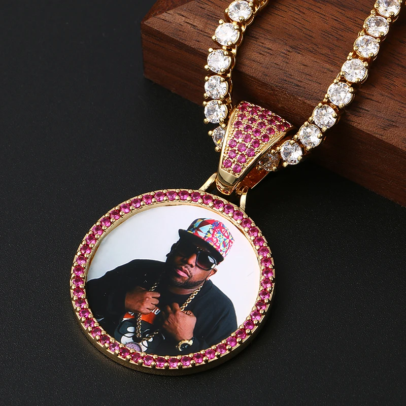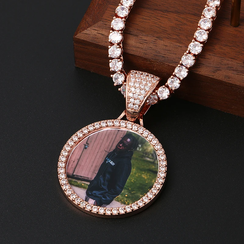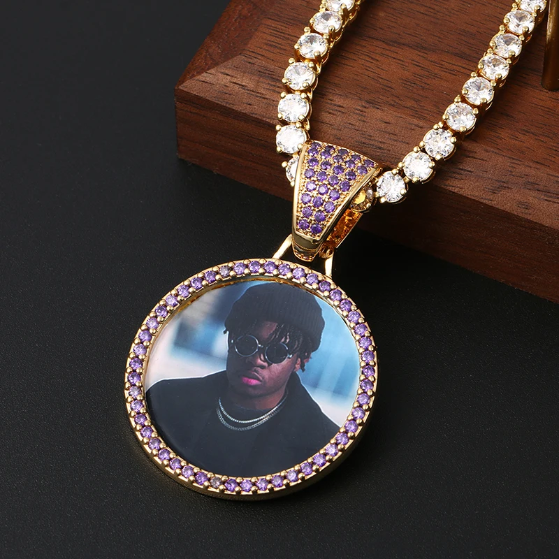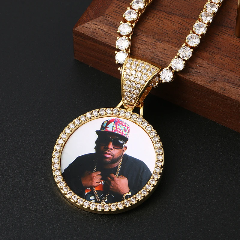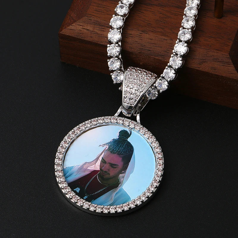 Custom Made Photo Medallions Pendant Necklace 4mm Tennis Chain Gold Silver Iced Out Cubic Zircon Men's Hip Hop Rap Jewelry Gift