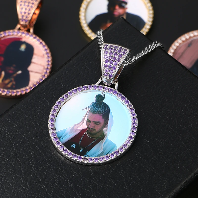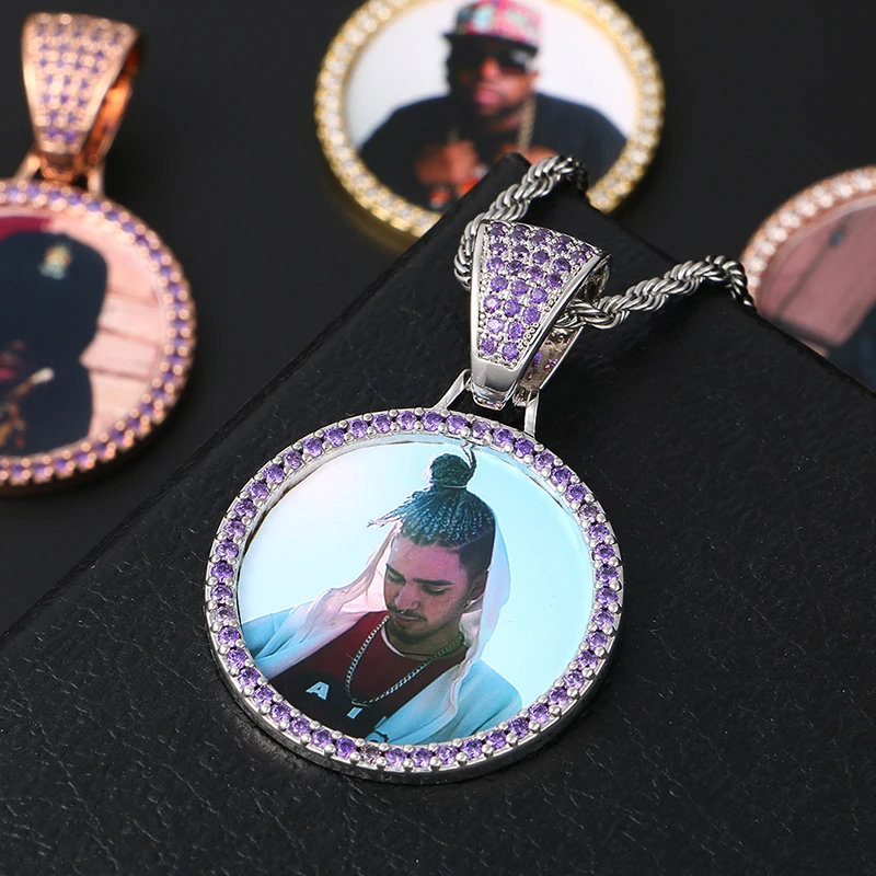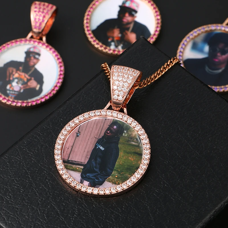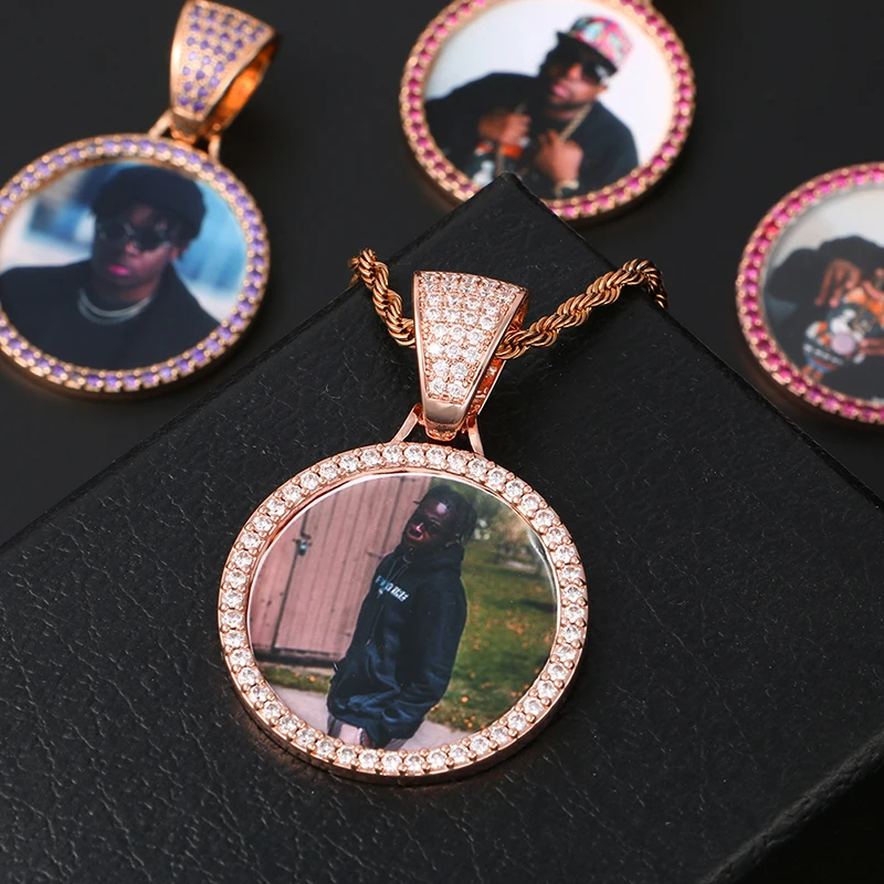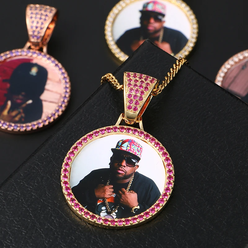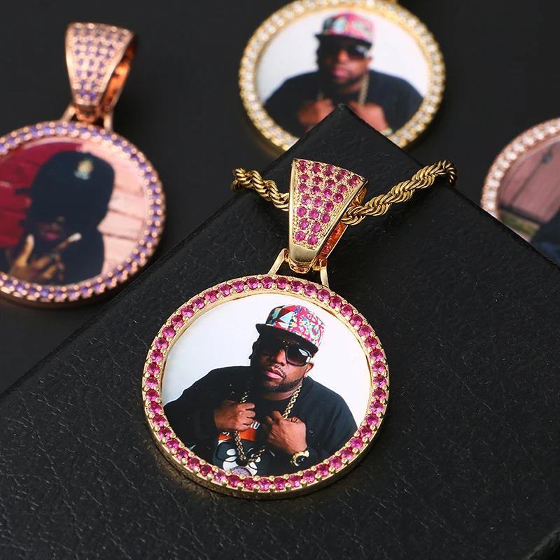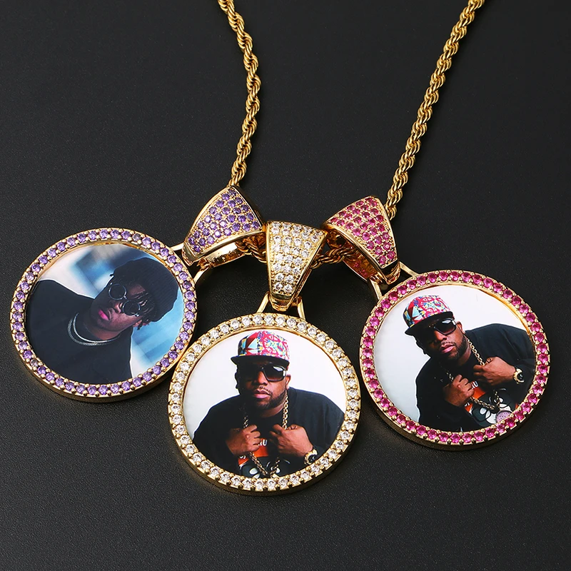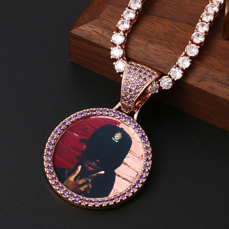 Custom Made Photo Medallions Pendant Necklace 4mm Tennis Chain Gold Silver Iced Out Cubic Zircon Men's Hip Hop Rap Jewelry Gift