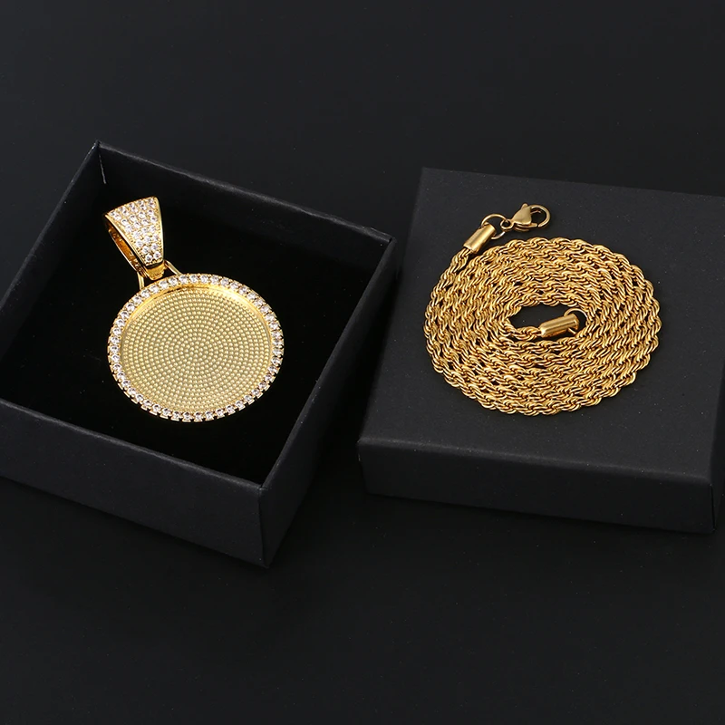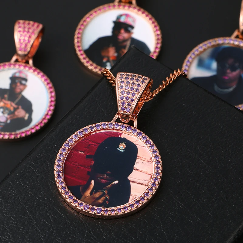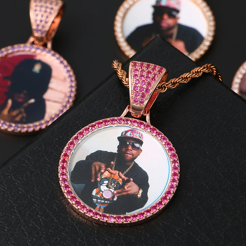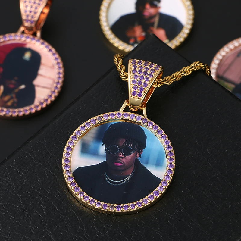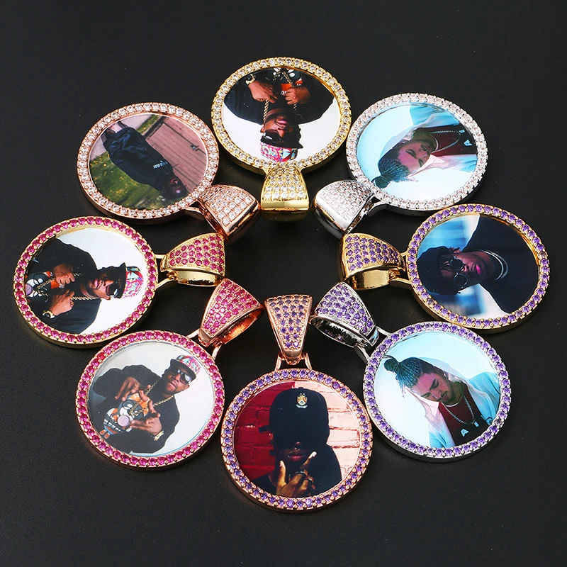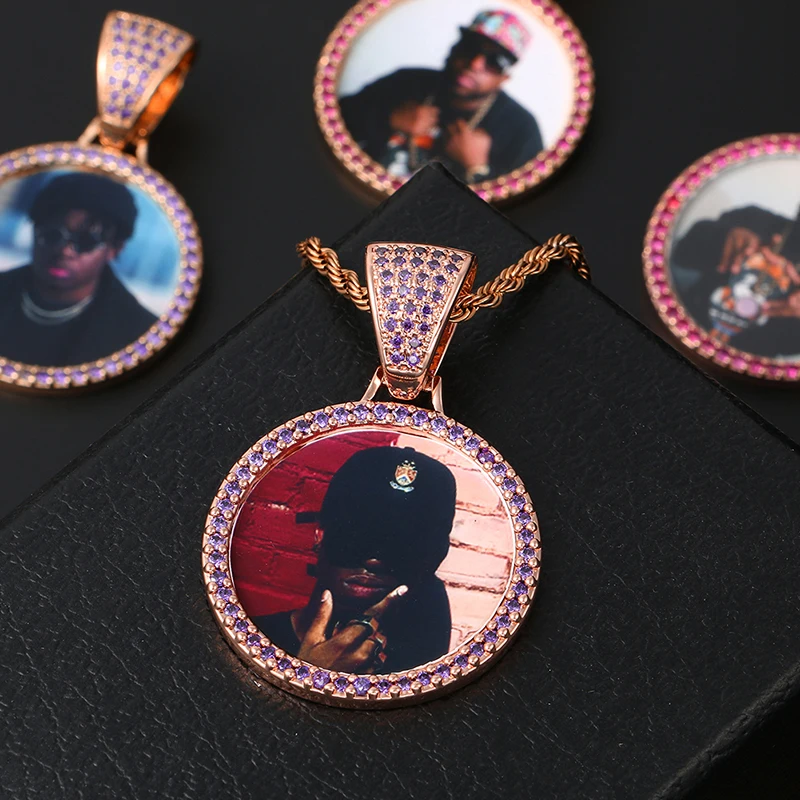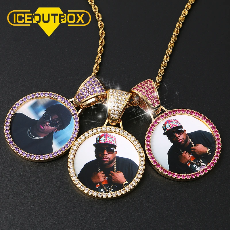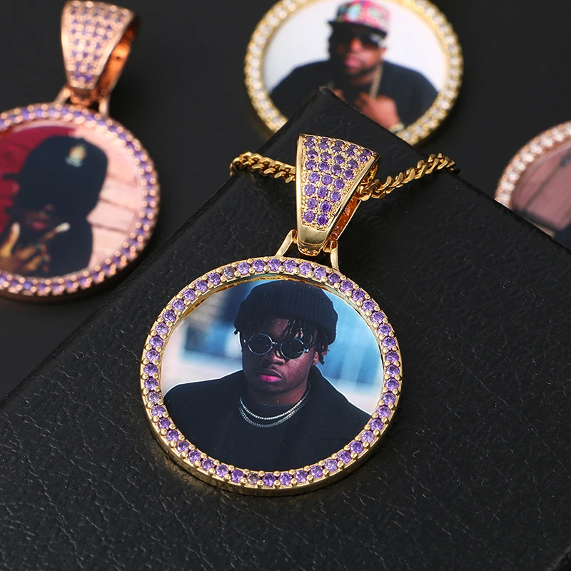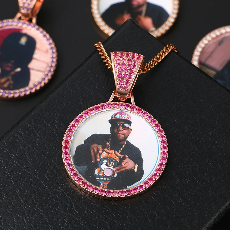Custom Made Photo Medallions Pendant Necklace 4mm Tennis Chain Gold Silver Iced Out Cubic Zircon Men's Hip Hop Rap Jewelry Gift
